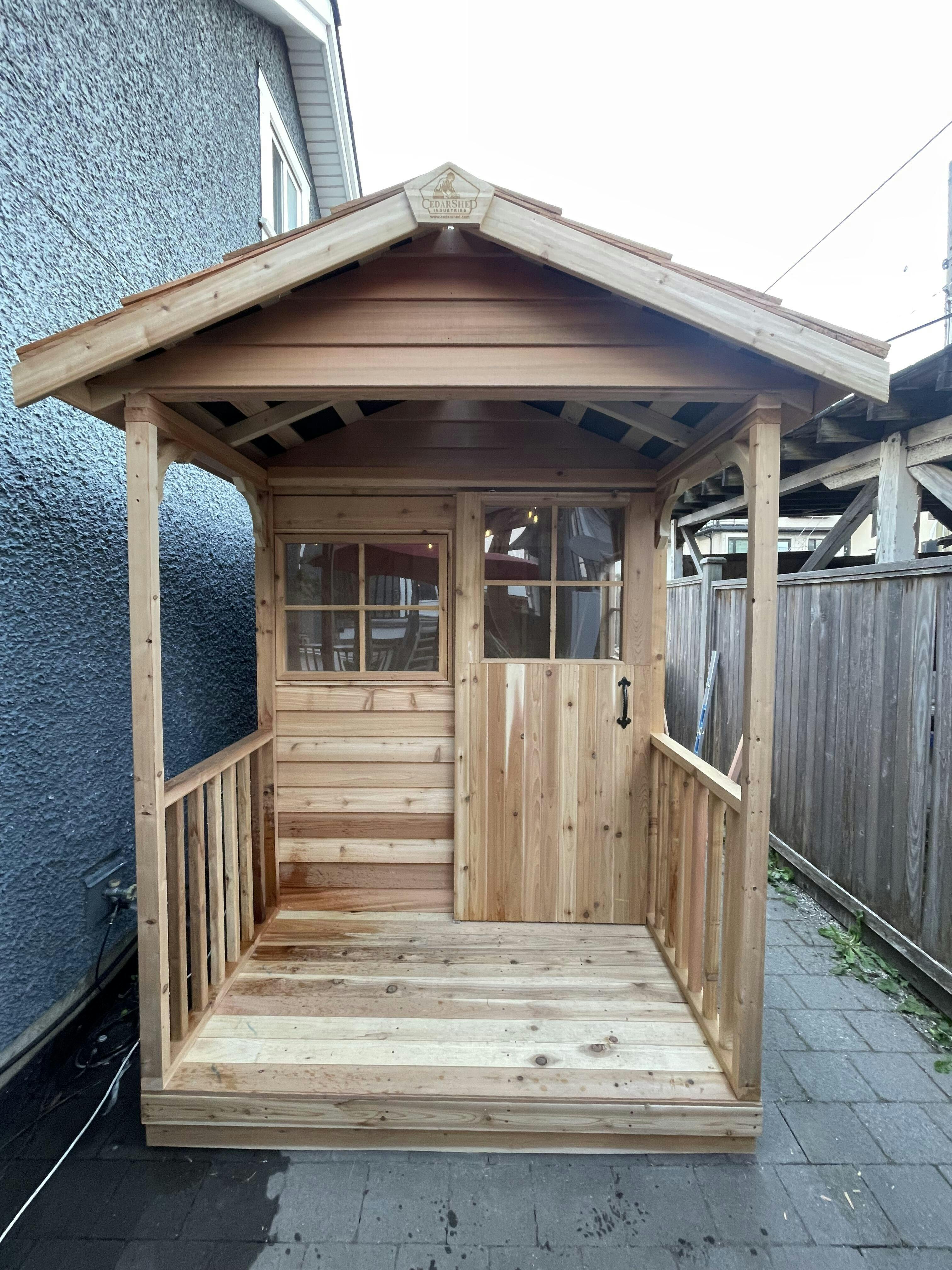 "I wanted to send a note to let you know that our shed arrived last Friday and my son and I assembled it over the weekend. It came out great! Everything was first rate from the quality of the packaging (very impressive that you neatly packed it on one skid) to cedar and the precision of the cut components… Thank you for your assistance throughout. A very satisfied customer."